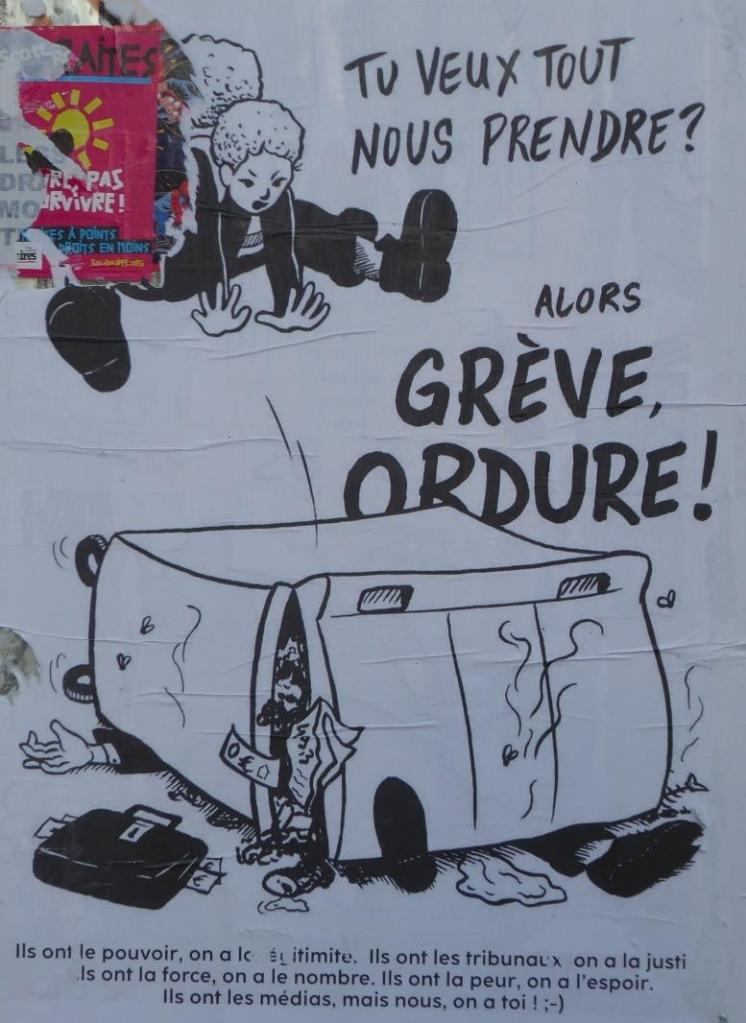 Ich bin sehr gespannt, ob die Mobilisierung einen langen Atem hat. Ob es mehr werden, als das letzte Mal? Oder weniger? Viel weniger? Irgendwie bin ich skeptisch und hoffnungsvoll zugleich. In der Zwischenzeit hat sich das politische Klima irgendwie beruhigt. Die Abfallhaufen vom Streik der Pariser Müllabfuhr sind fast alle aufgeräumt. Die Züge fahren ziemlich normal. Sogar die Parolen an den Wänden sind teilweise übertüncht worden. Die allnächtlichen Demos und Aktionen haben (fast) aufgehört. Aber zugleich kann es einfach nicht sein, dass die Mobilisierung zu Ende ist ….