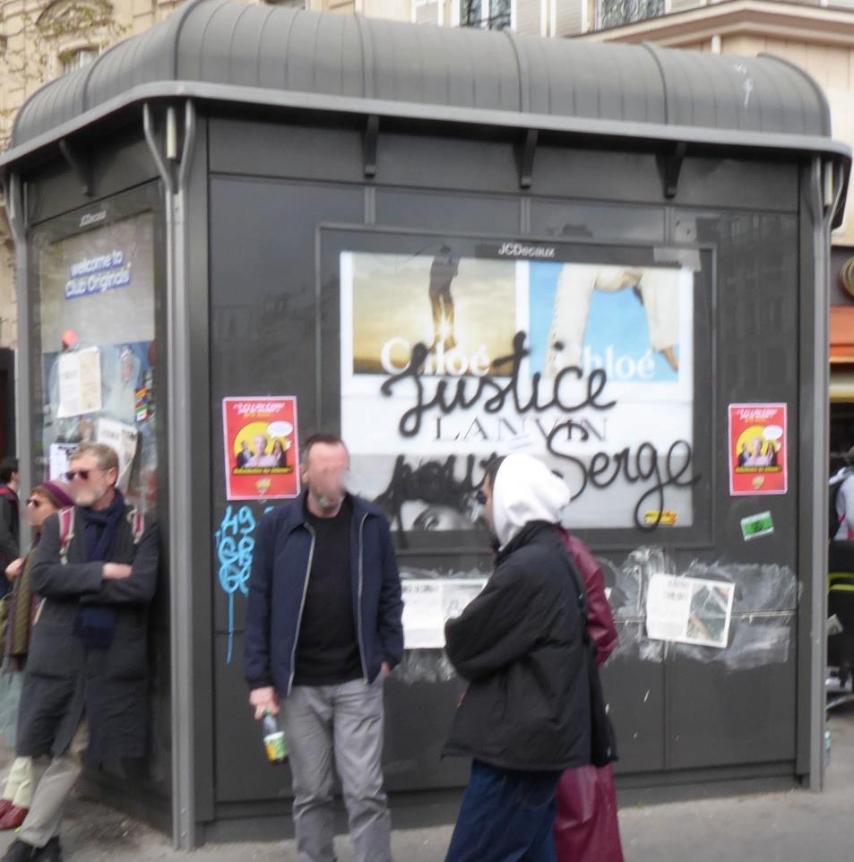 Diesmal scheinen mir auch mehr Parolen zum Thema Ökologie präsent. Viele Slogans beziehen sich auf die Bassines (Wasserbecken) im westfranzösischen Departement Deux-Sèvres (zwischen Poitiers und La Rochelle), d. h. auf die aktuelle soziale Bewegung gegen geplante Mega-Wasserspeicher. Und häufig geht es auch um Serge oder S., einen jungen Demonstranten, der bei der letzten Großdemo gegen die Mega-Bassines von einer Gasgranate am Kopf getroffen und schwer verletzt wurde. Er liegt noch immer im Koma und kämpft um sein Leben. Eine frisch gesprühte Parole an der Wand lautet: „Serge, Dein revolutionäres Herz schlägt noch. Halte durch! Wir sind bei Dir!“ Oder oft auch: „Gerechtigkeit“ oder „Rache“ für Serge.
