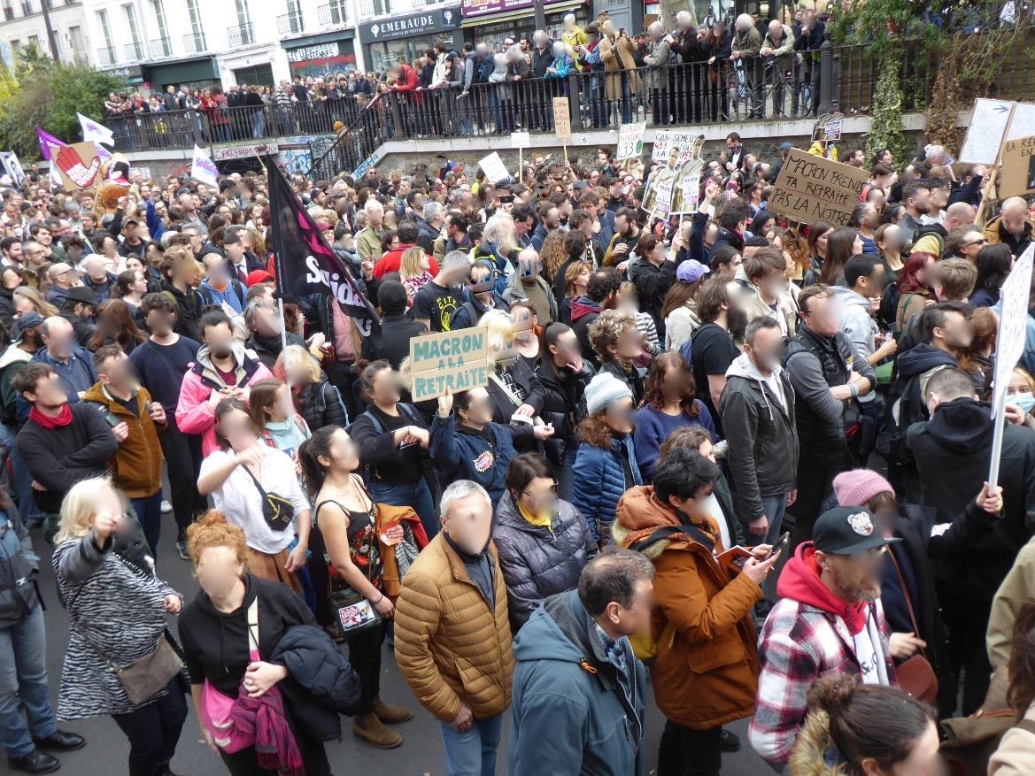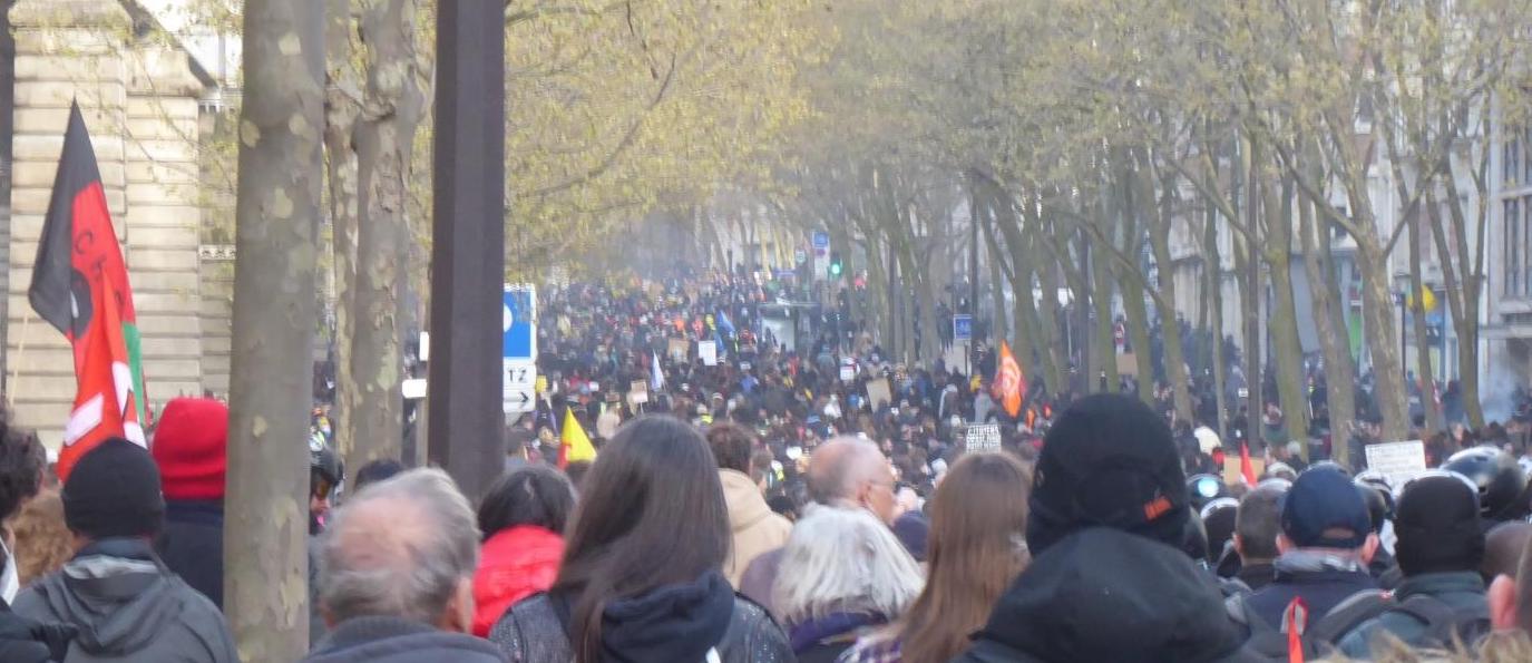 Am 17. März 2023 wurde die zunächst vorgesehene Abstimmung über das Gesetz jedoch abgesagt, denn Macron fürchtete, diese zu verlieren. Stattdessen wurde das Gesetz mit Hilfe des Dekrets 49.3 ohne Abstimmung des Parlaments erlassen. Das obligatorische Misstrauensvotum, das bei der Inanspruchnahme des Dekrets stattfindet, verfehlte die Mehrheit nur um neun Stimmen. Rund drei Viertel der Franzosen und Französinnen sprachen sich in Meinungsumfragen gegen das Gesetz aus – und plädierten zudem für ein Fortführen der Protestbewegung. Dies war die Situation, als ich Mitte März 2023 in Paris eintraf. Die folgenden Notizen entstanden jeweils im Anschluss an (insgesamt drei) Demonstrationen gegen Macrons Rentenreform. Es waren die beeindruckendsten Massenproteste, die ich bislang erlebt habe.